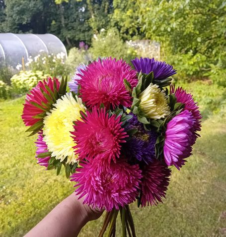 A month when I should have been really busy, I was relaxing with my new baby - and I loved it! As odd as it felt trying to ignore the garden that was overflowing with flowers, it's been a really lovely time getting to know this brand new human. But my Mum and Sister kindly helped out by 'dead heading' and taking buckets of flowers home with them, so that when I started cutting again, I'd have plenty of fresh blooms to snip at. That said I did take a few lovely orders this month. One was for a lady who was celebrating her 99th Birthday. I had the pleasure of delivering the bouquet to the lady herself and all I can say is if I am still going at 99, I'd be happy to look half as good!